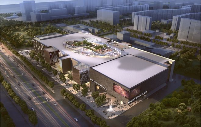 Этот ТРЦ имеет пять этажей и у него имеется отличие от других — крыша так же будет задействована для развлечения и отдыха — здесь расположились бассейн и теннисный корт.