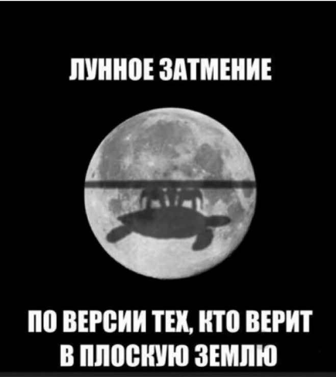 Если все эти убедительные доводы не помогли, то покажите эту картинку и спросите, почему при лунном затмении ни разу не было замечено такого: