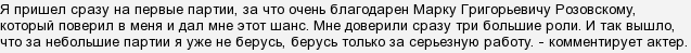 В театре он принимает активное участие в работе. Талантливого молодого парня вскоре ставят на главные роли и приглашают в кино. В искусство совсем не похожее на работу в театре. Он, словно заново учится мастерству- смотреть в объектив камеры, повторять дубль за дублем.