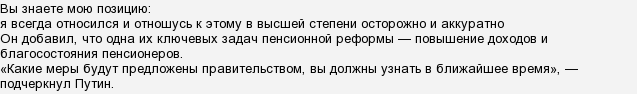 Поэтому мой ответ такой: в лучшем случае, если Президенту небезразличен его рейтинг, он может пойти на смягчение пенсионной реформы. В более лучшем случае — отложить её лет на несколько. И… всё.