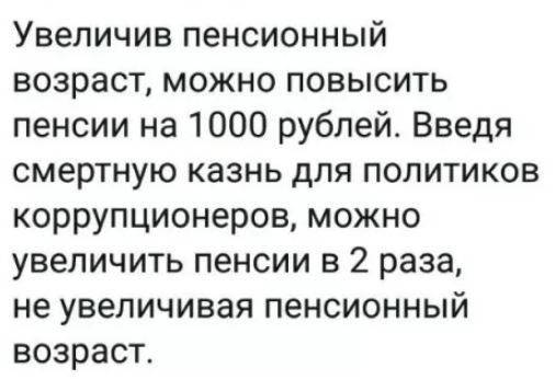 Из чего сразу можно сделать вывод о реальности таких преобразований в России. Да, реальны… в чисто философском плане: в курсе марксистско-ленинско­й философии нам рассказывали про гегелевские категории возможностей — реальные и формальные. Может ли турецкий султан стать папой римским? — вопрошал Гегель. Формально может. Законам природы такое преобразование не противоречит. А в реальности? Вот то-то… С урезанием зарплаты министрам ситуация сходная. Можно ли её урезать вдвое? Формально можно. Чем закончится? Поисками путей компенсации выпавших доходов, как это называется в экономике. Что сделать, чтоб эта возможность из абстрактной превратилась в конкретную? Не снижать зарплату чиновникам (может, даже и повысить), а снизить их число. Чиновник нужен не для того, чтоб что-то разрешать что-или запрещать, а для того, чтоб чисто проверять правильность бумаг. Всё. Все запреты должны быть чётко и исчерпывающим образом описаны в законах, и если любое действие индивидуума, в частности, его желание открыть или закрыть свой дело, издавать или не издавать газету, и прочая и прочая, оным запретам не противоречит, — то чиновник автоматом даёт своё разрешение. Автоматом. А если не даёт — то не потому, что "мало занесли" или "не откатили", а потому, что это противоречит вот этому и вот этому пункту действующих законов и правил. И ежели чел с таким решением чиновника не согласен — он подаёт иск в суд, а не взятку.
