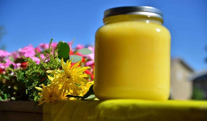 Хотя название довольно-таки необычное, поначалу сложно понять о чём идёт речь, особенно если никогда не слышал такого слова, но на самом деле ничего необычного нет, это просто-напросто сливочное топлёное масло, а распространено оно в Индии, так практически все блюда готовят на этаком масле, его добавляют почти во все блюда на нём и жарят, и добавляют его в различные блюда, считается, что оно может храниться очень долго и практически не портится.
