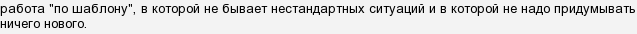 Мои увольнения с разных мест работы частично были связаны с тем, что имеющиеся требования и обязанности я быстро освоила, приходилось все выполнять на автомате, и я начинала подыхать с тоски и доставать окружающих. Мои попытки привнести некоторого креатива и свежего духа в дело, неизменно заканчивались протестом руководства, которое заявляло, что мое дело — это тупо делать свою работу по испокон заведенному шаблону. И все. А креативничать я буду дома.