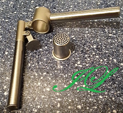 Для домашнего пользования я бы посоветовала очень удобный и достаточно недорогой (4-6 евро, т.е. примерно 300-450 рублей на сегодняшний момент) пресс для выдавливания чеснока от ИКЕА.
