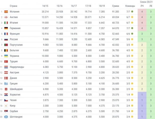 таблица уефа,