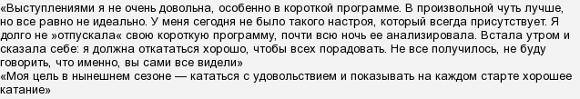 Умиляет самокритичность россиянки, которая уже рассказала о своем недовольстве своим же катанием, посетовав на психологию.