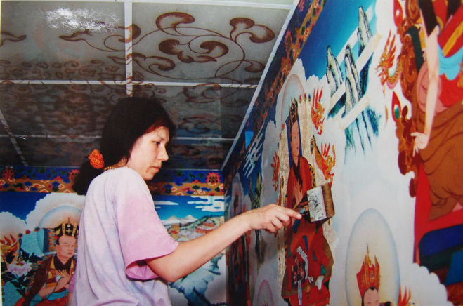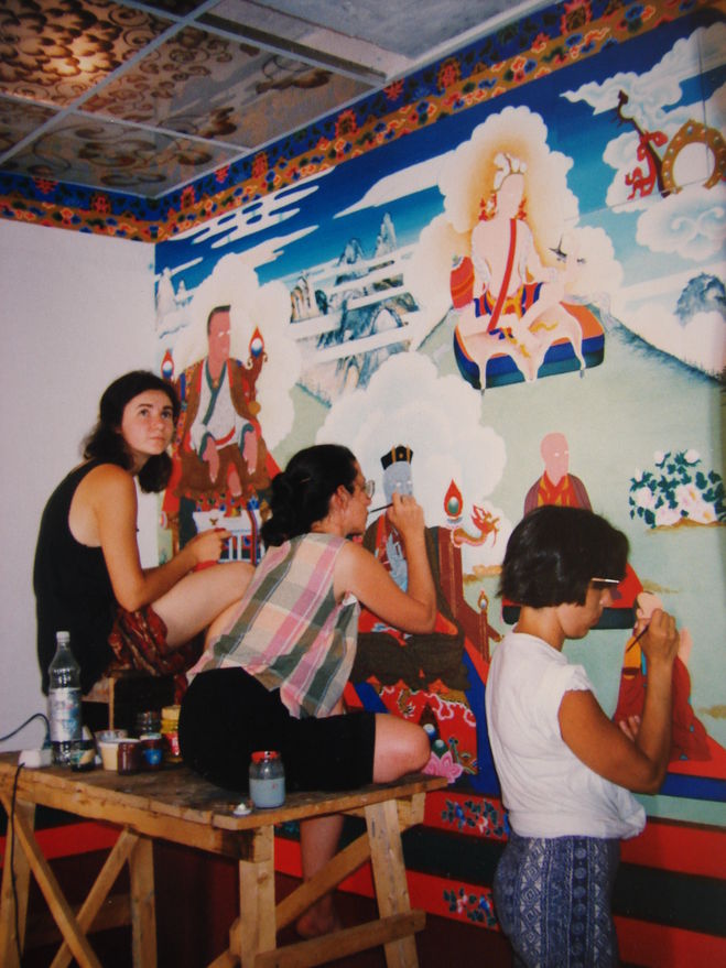 Рядом находится домик буддистского защитника Махакалы там внутри тоже роспись -гневные буддисткие божества защитники а также статуя защитника Махакалы Роспись проводилась волонтерами как художниками профи ( это я и еще пара человек) так и любителями под руководством тибетского художника Д Норбу