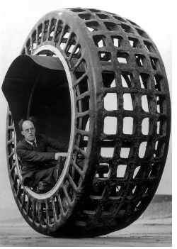 Автомобиль представлял собой большой барабан (диаметр около 3 м) в виде металлической решетки. Двигатель и сидение водителя были установлены внутри рамы и находились на одной раме. Движение машины осуществлялось с помощью элетропривода или бензинового двигателя. Также была создана модель авто для передвижения по пляжу и способная перевозить 8 пассажиров.