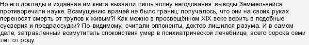 Дело в том, что в то время (1846 год) многие женщины, рожавшие в больницах, умирали от сепсиса, причиной которого могли невольно служить сами медики, поскольку не обрабатывали руки должным образом после занятий в прозекторской (т.е. после контактирования с трупами).
