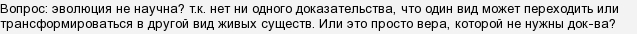 "Эволюция… это просто вера, которой не нужны док-ва?"