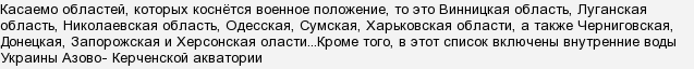 Кроме Запоржской област в этом списке ещё 9 областей, а всего 10 областей и одна водная акватория. Полный список в виде цитаты.