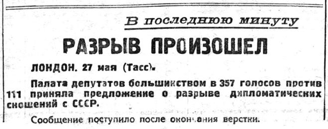 В мае 1927 г. Англия разорвала дипломатические отношения с СССР.