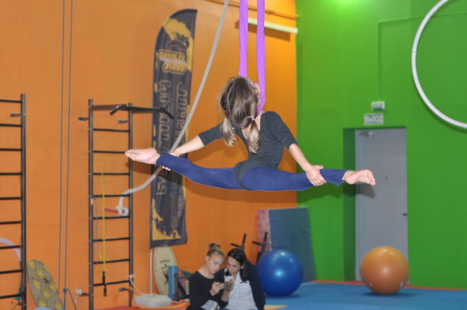 Моя шестилетняя внучка, которая занимается воздушной эквилибристикой со всем юношеским пылом и успешно, занимая места на соревнованиях, попросила у деда Мороза два предмета для занятий : петлю и обруч. Петля это пятиметровый кусок специальной материи в который гимнастка заматывается а потом потом летит вниз, эффектно разматываясь и останавливается, удерживаемая петлей , например, за щиколотки. А на обруче она прогибается, кувыркается, цепляется за него ногами. Диаметр обруча 1, 5 — 2 метра. Боюсь, что обруч не поместится в санки деду Морозу, а красную петлю для Ксении он уже заказал и ждет доставки.