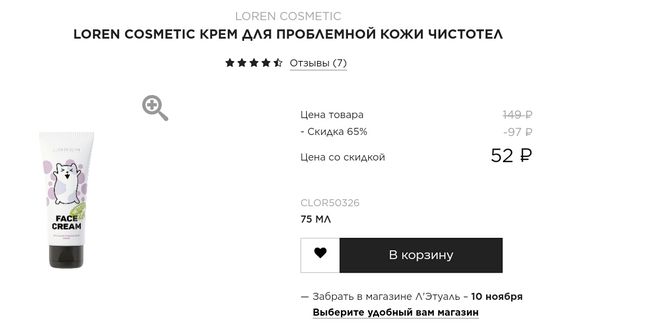 Также можно осмотреть скидки на данную продукцию,например на крем для проблемной кожи сейчас скидка 65% и его цена составляет 52 рубля, вместо 149.