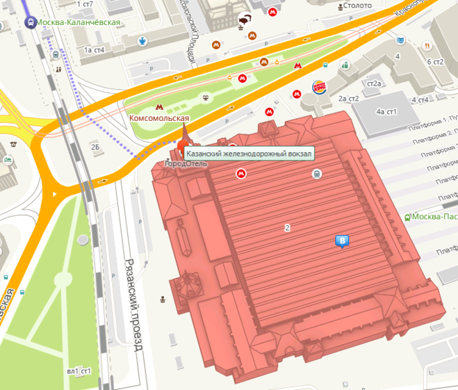 • На метро. Заходим на ближайшую к Белорусскому вокзалу станцию "Белорусская" Кольцевой (коричневый цвет на схемах метро) и доезжаем до станции "Комсомольская". Для выхода нужно воспользоваться выходом №4, который ведёт непосредственно в здание Казанского вокзала. Следует учитывать, что возле Белорусского вокзала имеется 2 смежных одноимённых станции — кольцевая и радиальная. Чтобы не перепутать, привожу схему расположения входа на Кольцевую: