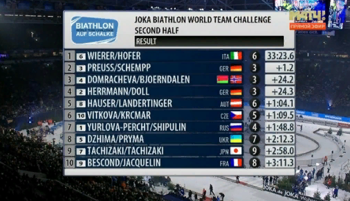 В Гельзенкирхене завершилась биатлонная Рождественская гонка 2018, десять пар сначала прошли масс-старт, затем гонку преследования и здесь первенствовала итальянская пара Доротея Вирер и Лукас Хофер, допустившие во ходу гонки 6 промахов.