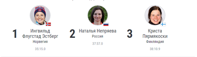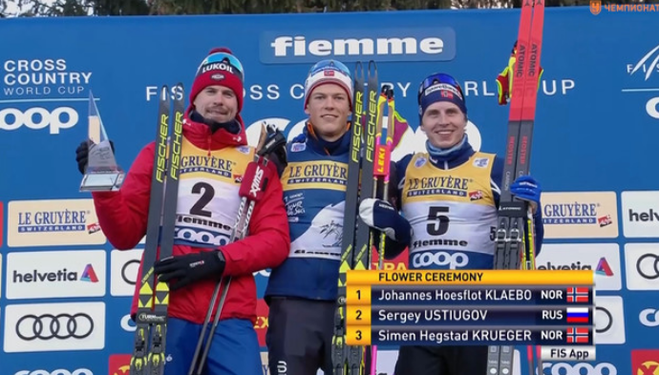 В итоге норвежец первый, а замкнул тройку призеров коллега Клебо по команде Симен Крюгер.