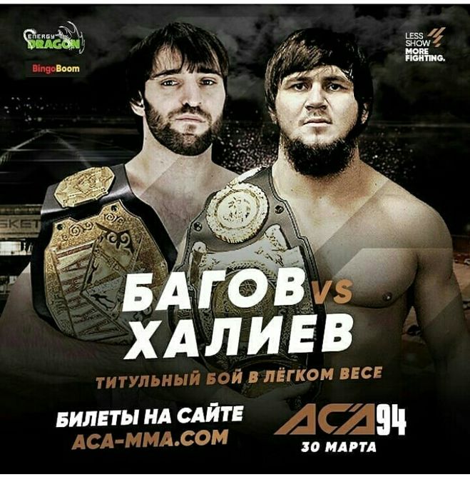 Багов и Халиев это два чемпиона в своих весовых категориях в организациях Ахмат и ACB, которые на данный момент объединились и превратились в промошин ACA и турнир ACA 94 это событие выяснить кто сильнее и является единственным чемпионом в своей весовой категории. Смотрите на телеканале СИЛА ТВ и на канале Матч Боец 30 марта 2019 года в 20:00 по московскому времени.