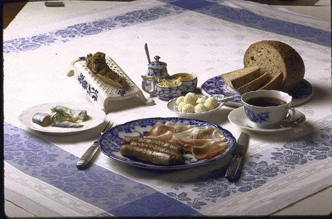 Может быть и такой вариант завтрака как хлеб ржаной, чай рыбы и колбасные изделия.