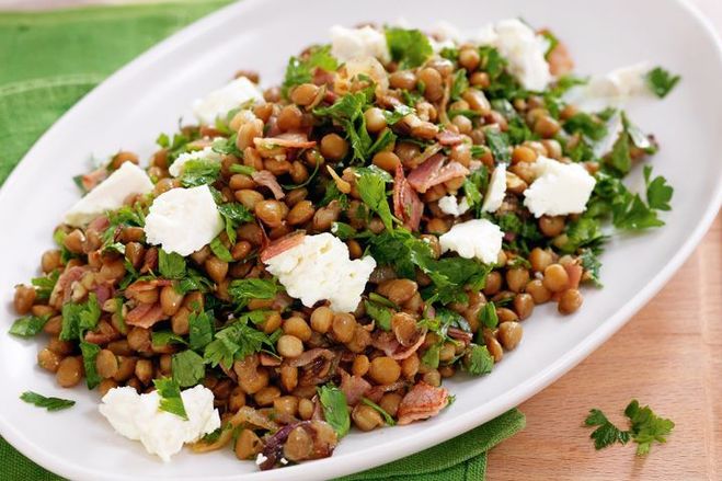 А можно сварить чечевицы и приготовить что-то по типу салата добавив к ней сыр по типу фетта либо брынза, зелень и какое-то мясо например тот же бекон. Заправить растительным маслом и посолить. Но можно заправить и оливковым маслом.