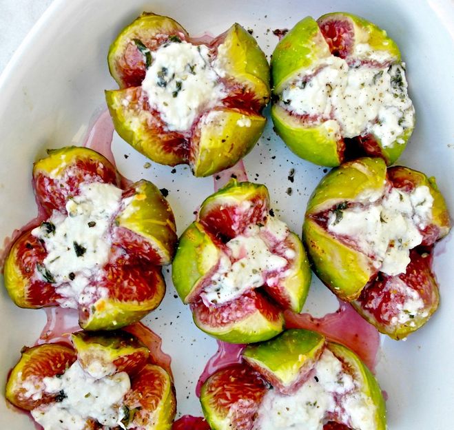 А можно надрезать инжир на 4 части и нафаршировать сыром фета и запечь в духовки до готовности инжира.