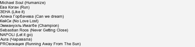 До 8 марта будет известно имя исполнителя, а сейчас известны 10 претендентов, прошедших в финал: