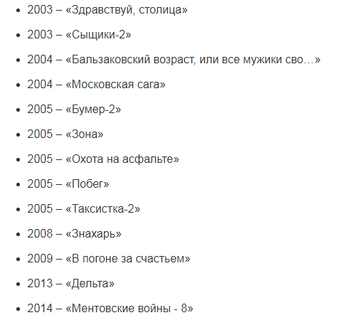 Список сыгранных ролей внушительный.