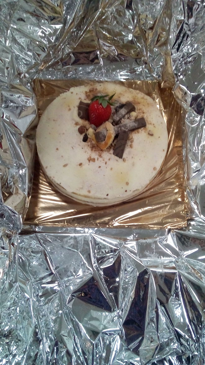 3 То ли крошки из печенья то ли крошки из орехов слишком много под шоколадом и из-за этого создается эффект наляпистости. Лучше бы смотрелось без этой крошки. Так как и так есть украшения из шоколада и клубники. Этого с головой достаточно и смотреться будет более стильно.