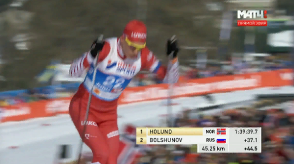 В итоге золото у норвежца Холунда, серебро у россиянина Большунова и бронза ещё у одного норвежца Сьюра Рёте.