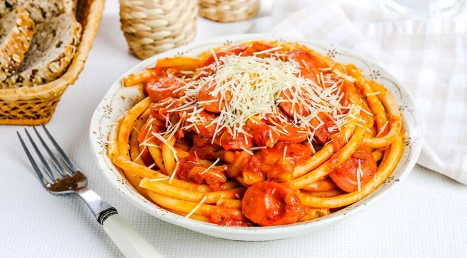 -зажаркой с колбасой с макаронами, рисом, гречкой, гороховым/фасолевым/­чечевичным пюре