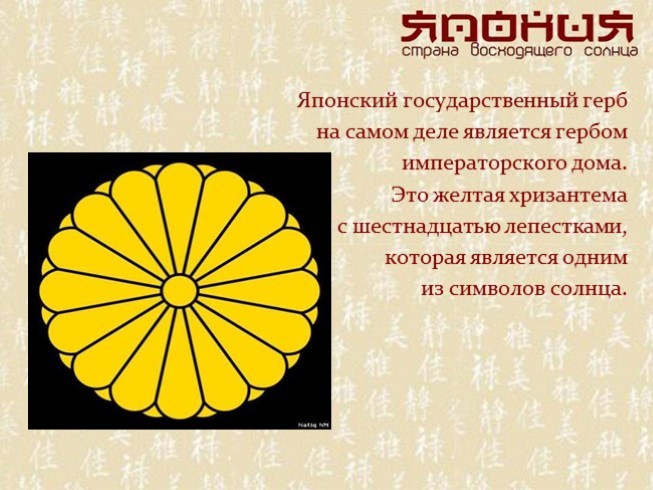 Это любимый цветок в Японии. В древности ежегодно отмечали праздник хризантем. Ведь золотая Хризантема с 16-ю лепестками была символом японского императорского дома.