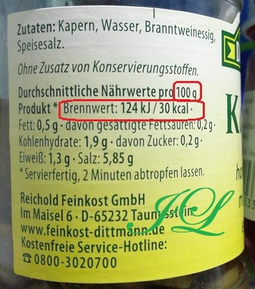 Относительно каперсов, которые употребляются в кулинарии исключительно как приправа, картина такова (исхожу из данных на баночке с консервированными каперсами, которую специально сфотографировала): на 100 г — 30 килокалорий.