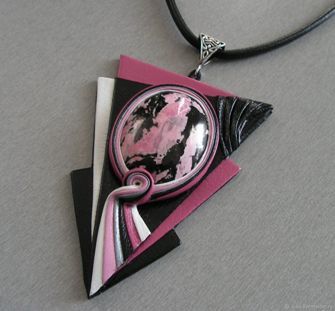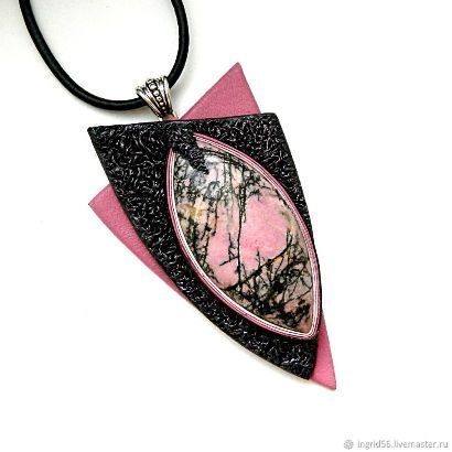 На шею — кулон из чёрной кожи с родонитом (крупная капля).