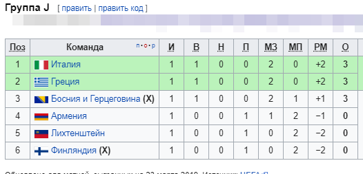 Группа "красно-зеленым" досталась не такая сложная: Армения, Лихтенштейн, Финляндия, Босния и Герцеговина. Единственный знак вопроса- греки. Выиграли ЧЕ-2004, вышли в 1/8 финала ЧМ-2014. Что же будет в этот раз? Сумеет ли квалифицироваться Италия на мундиаль?