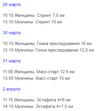 Вот полное расписание ЧР по биатлону 2019.