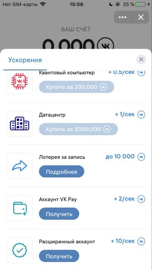 Но есть выход, получить расширенный аккаунт VK Pay, и тогда ускоритель будет еще круче чем Датацентр +10/сек., и к тому же постоянный а не срочный.