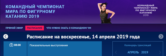 Сезон 2018/2019 у фигуристов подходит к концу, и одним из последних стартов будет World Team Trophy in Figure Skating. Традиционный турнир шести сильнейших команд мира пройдет в шестой раз и примет его Фукуока. Права на трансляции принадлежат Первому каналу, именно он и будет в меру своих сил и испорченности показывать чемпионат. Показательные выступления, которые венчают любые соревнования фигуристов, в телесетку на 14 апреля не везли (все силы канала будут брошены на день рождения Пугачевой), но вот сайт Первого канала все покажет в лучшем виде начиная с 8.00 по московскому времени. Поделится ли главный канал страны эксклюзивом с Матч-ТВ — сказать сложно, но ближе к делу будет ясно. На данный момент трансляция только через инет.