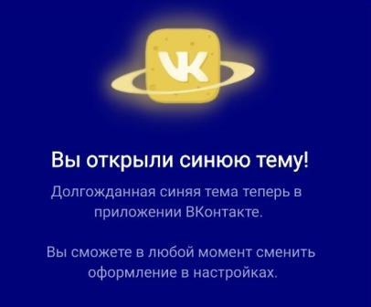 Официально во вконтакте ввели лишь пока только темную тему, это когда фон со светлого меняется на темный. Ажиотаж к этой темной теме немножечко поуменьшился потому что многие себе уже установили эту темную тему. Однако недавно стали появляться другие комментарии — лунная тема, синяя, розовая, летняя, градиентная и т.д. Это все шутка. Если вы увидели такое сообщение как ниже, то знайте, что это обычный фотошоп.
