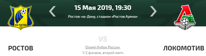 В среду 15 мая состоятся ответные матчи 1/2 финала кубка России по футболу 2018/2019. В одном из них встретятся Ростов и Локомотив. Для дружины Карпина победа в Кубке единственный шанс попасть в лигу Европы. На стороне Ростова сыграют много факторов. Например, домашняя арена, два забитых гола в гостях и пожалуй большая мотивация, чем у соперника. Локомотив конечно не против будет стать обладателем Кубка, но задача попасть в Лигу чемпионов на 99 процентов уже выполнена, стоит только удержать достигнутый результат. В любом случае матч должен получиться интересным.