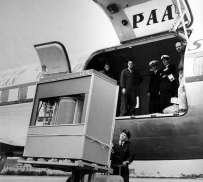 Момент погрузки жесткого диска IBM 350 в 5 мб, 1956 год.