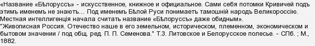 Начавшееся национально-освободительное движение в конце 19 века вынуждено было принять государственное самоназвание края как "Беларусь" (изменив на местное звучание официальное русское название "Белоруссия"), хотя были альтернативы в виде "Кривия" и "Литва".