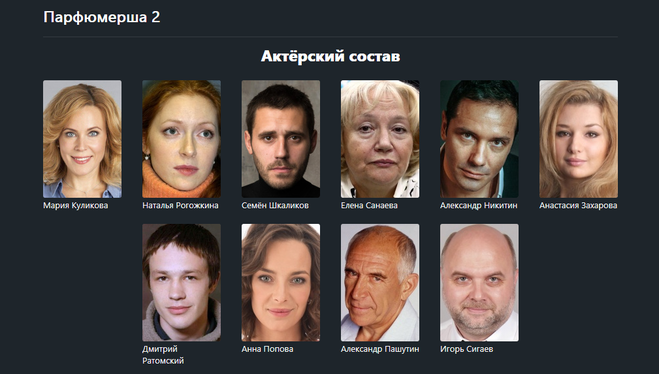 Таков основной актёрский состав сериала «Парфюмерша 2»