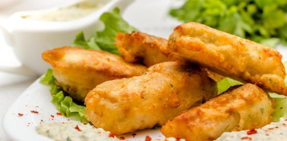 Обмакиваем кусочки рыбки в кляр и жарим на сковороде.