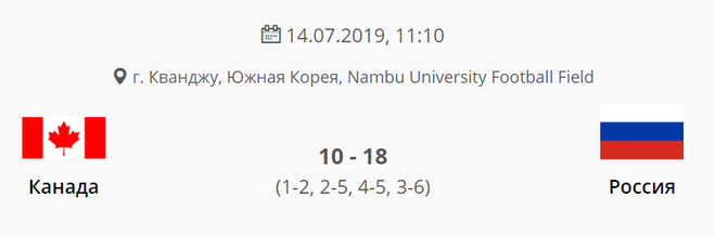Канада — Россия 10:18.