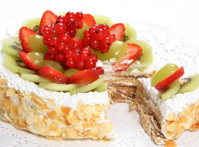 Сладкие ягоды тоже идут, но их на украшение хорошо оставлять, а сладкоежки могут и как часть прослойки для коржей вместе со сгущенкой делать) Сладкие обычно — черешня, малина, ежевика, клубника и вишня и слива и крыжовник(сладких сортов).