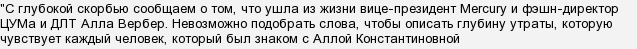 Стало известно, что в Италии умерла известная в России женщина — Алла Вербер, которая являлась директором Московского ЦУМА и
