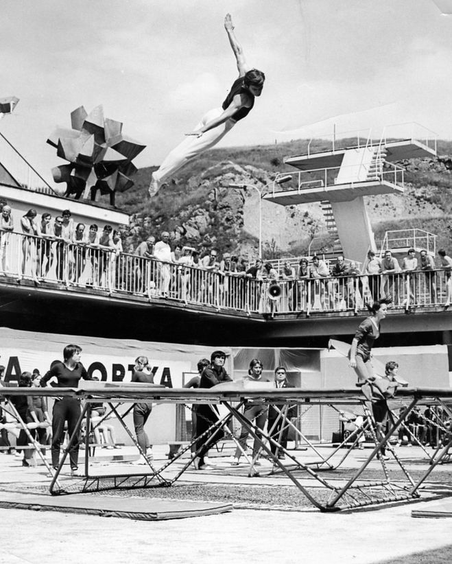 В 1964 году — в Лондоне состоялся первый чемпионат мира по прыжкам на батуте.