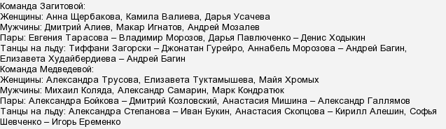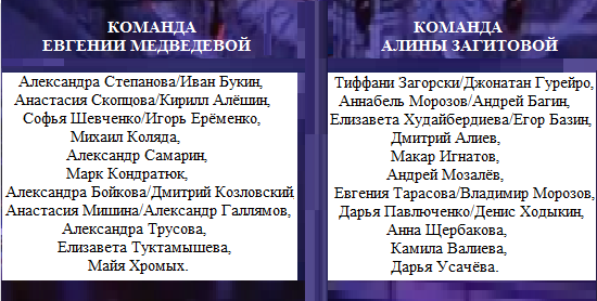 Кто вошел в команды Загитовой и Медведевой на кубке 1 канала по ФК 02.2021?