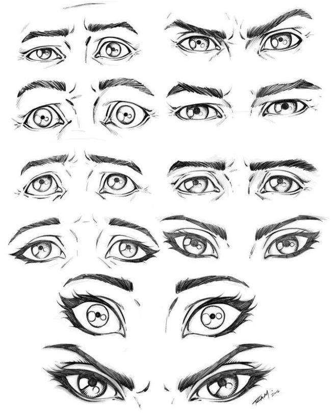 При помощи расположения бровей можно изменить взгляд и эмоции. Вот посмотрите как прорисовывают брови художники.